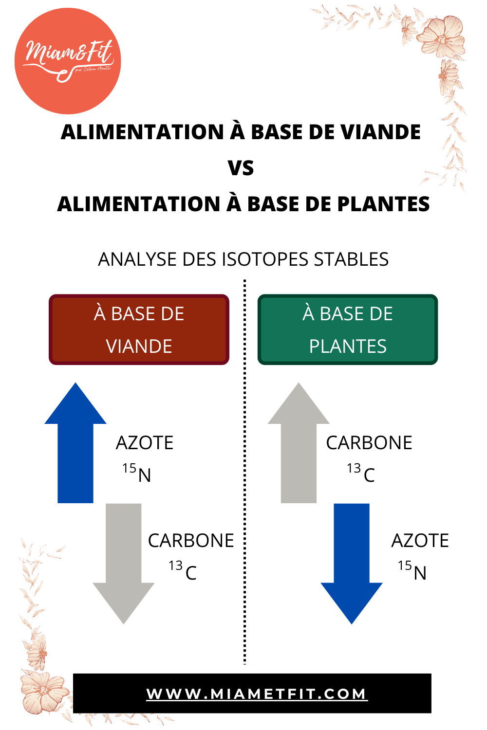Ainsi, plus de consommation de viande conduit à des niveaux plus élevés d’azote par rapport au carbone donc à un rapport 13C/15N faible (7).